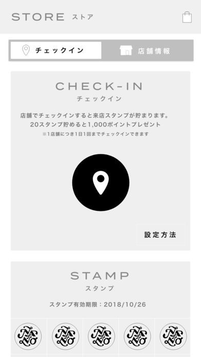 チェックイン機能が搭載されていて、店舗でチェックインをすることによってスタンプをもらうことができるようになっていて、ポイントと交換することが可能となっています。