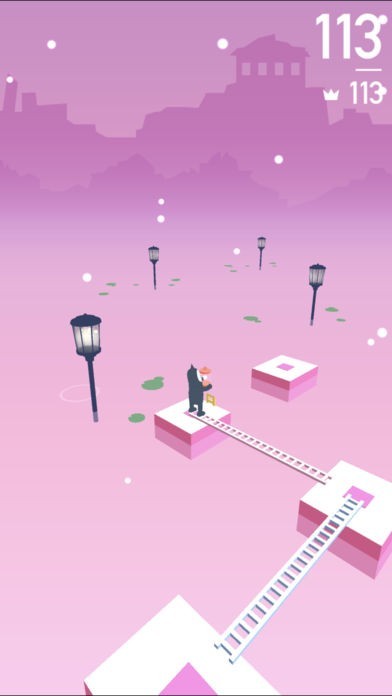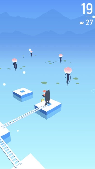 「Ladder Cat™」は、タップ操作のみで遊べるシンプルなゲームアプリです。 遊び方はいたって簡単、ブロックの上に立っているキャラクターを、次のブロックまではしごを渡して進ませるだけです。画面にタッチしている間ははしごが伸び続けるので、程よい長さでタイミングよく指をはなしてはしごの長さを調節しましょう。 長すぎたり短すぎたりせるとゲーム終了となります。