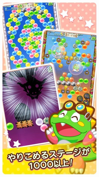 1000ステージ以上を用意!同色のバブルを3つ揃えてどんどん消そう!