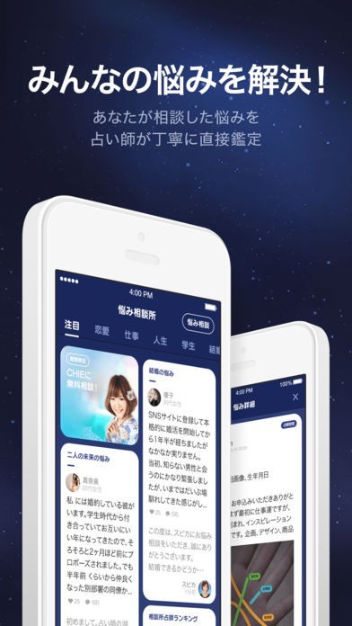 LINE占いはおなじみLINEが展開する占いアプリです。占星術やタロットに手相占い等、多種多様な占いをアプリ1つで利用することができます。数多くの有名占い師が占いの監修を行っており、プロによる本格派の占いが楽しめます。メインのコンテンツであるLINEキャラクターによる星占いでは、生年月日の入力で毎日の仕事運や恋愛運、金運といった運勢がわかります。LINEで繋がっている友達や恋人との運勢を占える相性占いや、好きな占い師を選んで相談できる悩み相談所など、LINEの特徴を生かしたオリジナルコンテンツも豊富です。