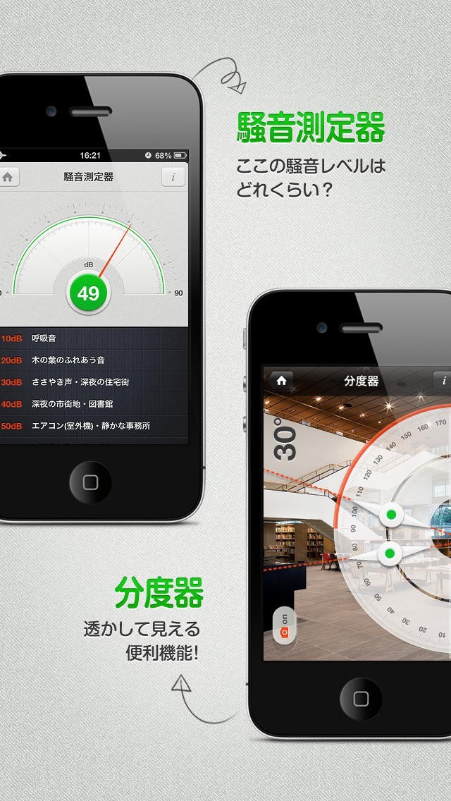App Storeより引用* 定規とパスタメジャーはiPhone6/6 Plus 以降の機種に未対応です。