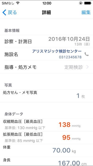 体重から血圧まで、体について詳しい情報を登録できます。自分で検査できるような情報はもちろん、血液検査の結果をまとめて管理できる。日にちや備考なども添えられるので、後で読み返す時も便利です。