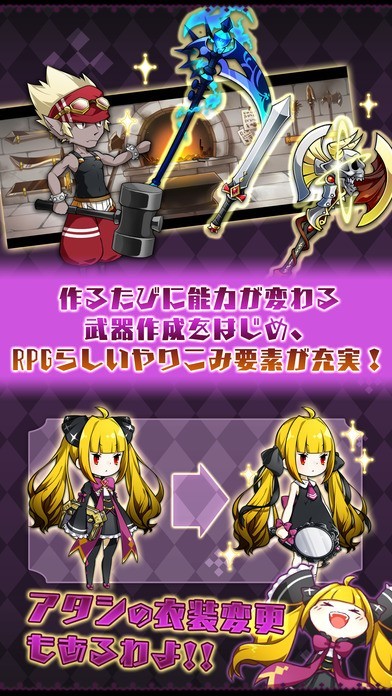 武器作成、武器精錬をはじめとした、RPGらしいやりこみ要素が満載よ!