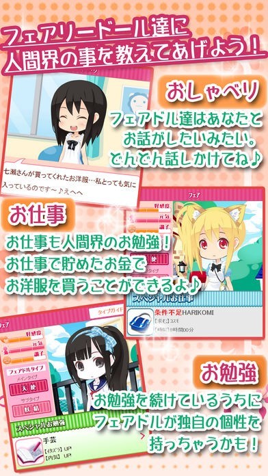 お姫様やねこみみ少女、天使などなど、自分だけの世界一かわいい癒し系フェアリードールを育成しよう!!