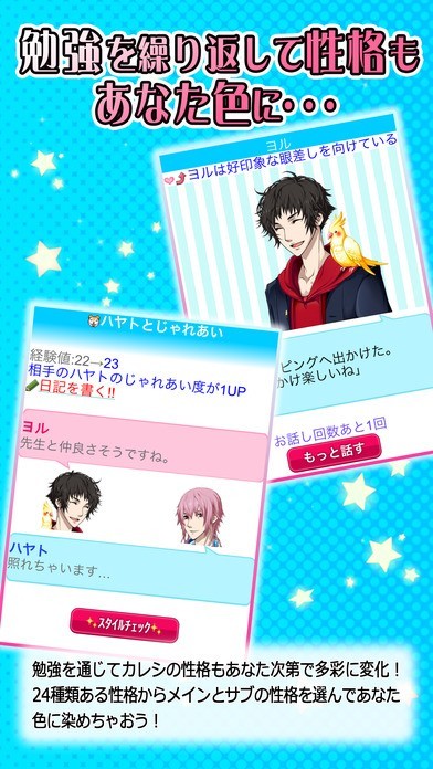 5種類のキャラクターからお気に入りを育成!アクセサリーやフェイスも変えて理想の彼氏を作れる!