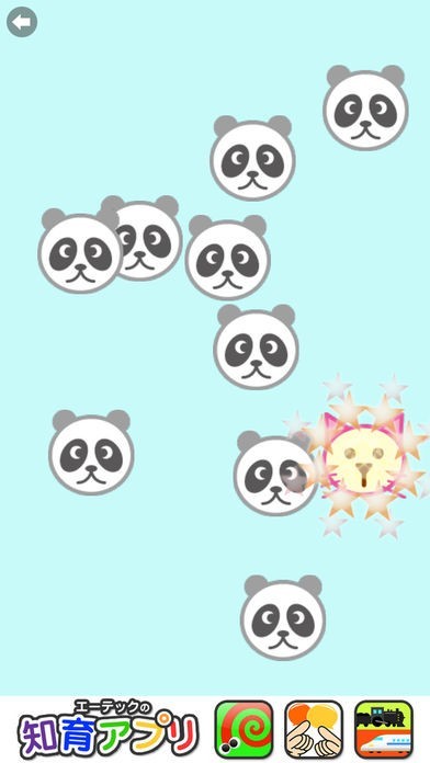 その中から違ったキャラクターを探す赤ちゃん/幼児向け知育アプリ。