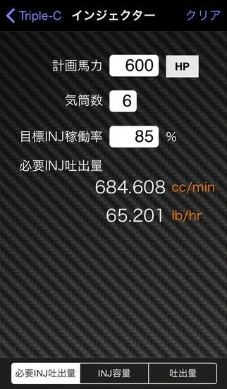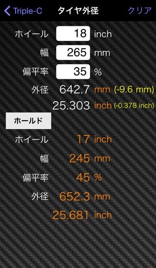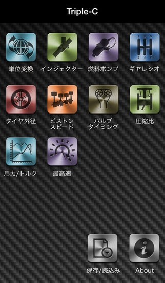自動車用の計算や単位変換に特化した Car Calculation Conversion System「トリプル-C」のスクリーンショット