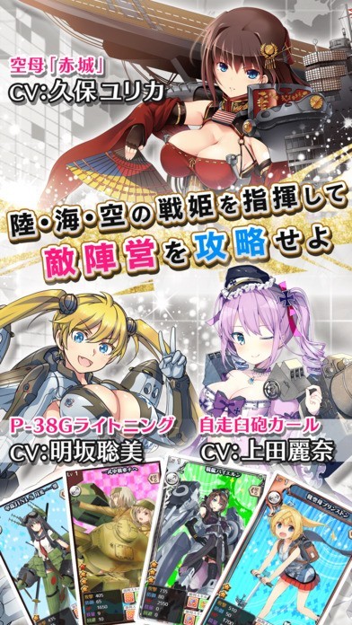 並行世界間の戦争を打開すべく司令官に任命されたあなたは、並行世界の住人である3人の副官とともに、陸・海・空の兵器が擬人化した「戦姫」たちを編成してユングヴィと戦うことに。