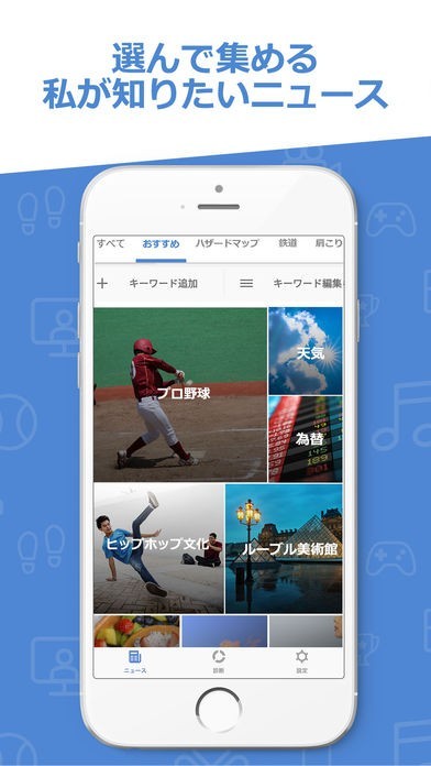 様々なカテゴリのニュースが素早く閲覧でき、気になるニュースはキーワード登録で重点的に閲覧できます。