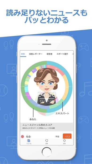 インターネットニュースで陥りがちなのが、偏った情報だけを取ってしまうことです。このアプリにはニュースの自己分析ができ、どのような情報を得ているのかをグラフ化して見ることが可能なので、自分に足りない情報を得るのに役立ちます。