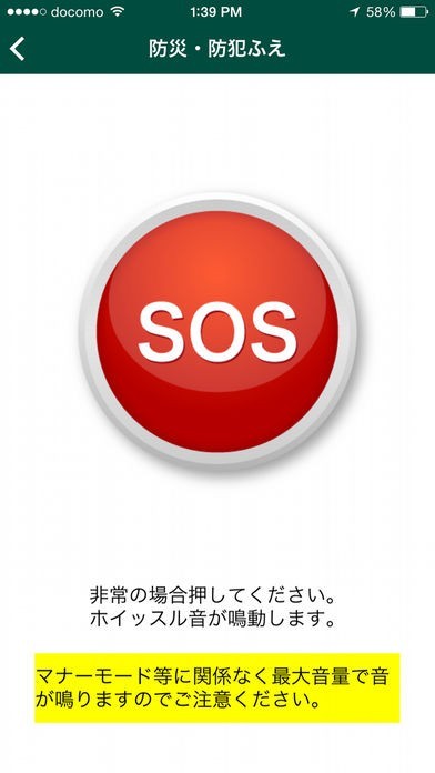 防災ふえ機能によってマナーモードなどになっている場合でも大音量でアラーム音を鳴らすことができるようになっているので、災害時に自分の居場所を知らせることができます。
