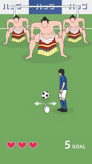 ゴール前に出て来るものに惑わされずに、ボールに触れてください。蹴る方向が決まったらボールをドラッグし、シュートのタイミングを測ってください。ゴールに隙を見つけたら指を離します。離した瞬間ボールはゴールに向かって飛んでいきます。成功しても失敗しても、自然に笑顔になるゲームです。