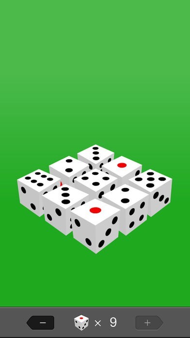 一般的な6面体のサイコロ(ダイス)を1個から最大10個まで一度にふることができ、すべての出目の合計を計算して数字で表示してくれます。ふるサイコロの数は画面下のプラスボタン・マイナスボタンで簡単に増やしたり減らしたりできます。1個だけふることで、1から6までの乱数を得ることにも使えます。失くしやすい実物のサイコロを持ち運ぶ必要がないので余計な神経を使う必要がありません。ゾロ目など珍しい目が出た時などに、結果を画像付きでツイッターやインスタグラムに投稿して楽しむこともできます。