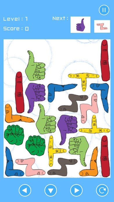 「手トリス!」は、ブロックの代わりに手や指を積み上げて消すという一風変わったテトリスです。操作は、ブロックを左右や下に動かしたり、回転させて積み上げたりと、他のテトリスと同様に簡単となっています。ですが、ブロックがユニークにアレンジされていることで、普通のテトリスより楽しく遊べるようになっています。