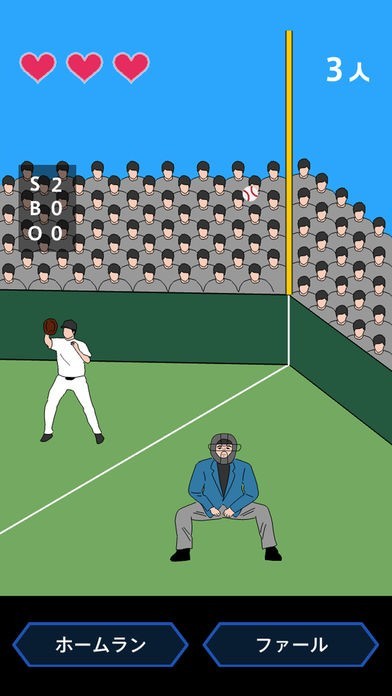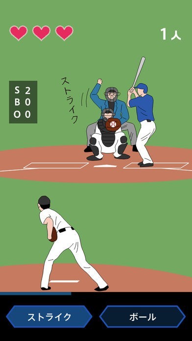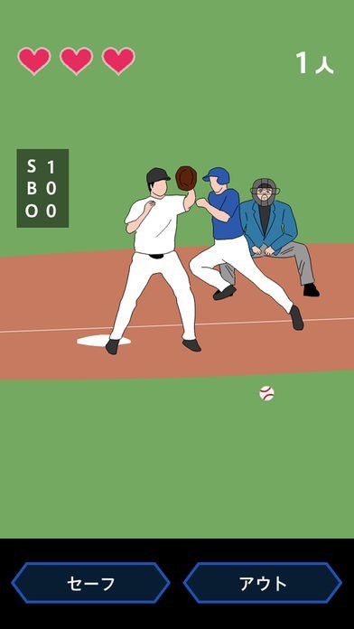 よくあるバッターやピッチャーが主役の野球ゲームとは異なり、審判が主役となる一風変わった野球ゲームです。ストライクやボール、アウトやセーフなどのジャッジを瞬時に判断して審判を下していきます。ジャッジするまでの時間は限られ、誤審やタイムアウトは3回までしか許されないので、瞬時に正確な判断を下せる決断力が必要になります。ゲーム自体は2つのボタンをタップするというシンプルな内容ですが、ボールの動きを見極めて即座にジャッジしなければならないので、なかなか難易度が高下せる、つい熱中してしまうゲームです。今まであまりスポットが当たらなかった審判側を体験することができます。