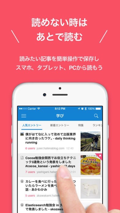 忙しい時にニュースアプリやTwitterなどのソーシャルメディアで見つけた記事をはてなブックマークを使って後で読み返せるので非常に便利です。