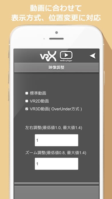 □ 設定により、VR動画再生時の左右調整、ズーム調整が可能です。