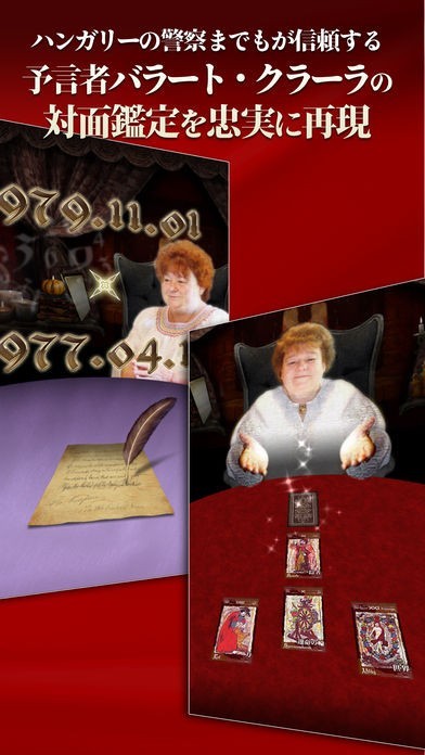 「予言者バラートクラーラのタロット占い・数秘術占い」はテレビで行方不明者の探索に協力したり、著名人の未来のリーディングを行ったりと多数の実績を誇っているハンガリーの人気占い師であるクラーラ氏の鑑定を体験することができるアプリです。数秘術占いとタロットカード占いの両方を行うことが出来るようになっているだけでなく、今日一日の運勢を無料で鑑定してもらうこともできるようになっているので、ちょっとした空き時間に占いを楽しむことが出来ます。