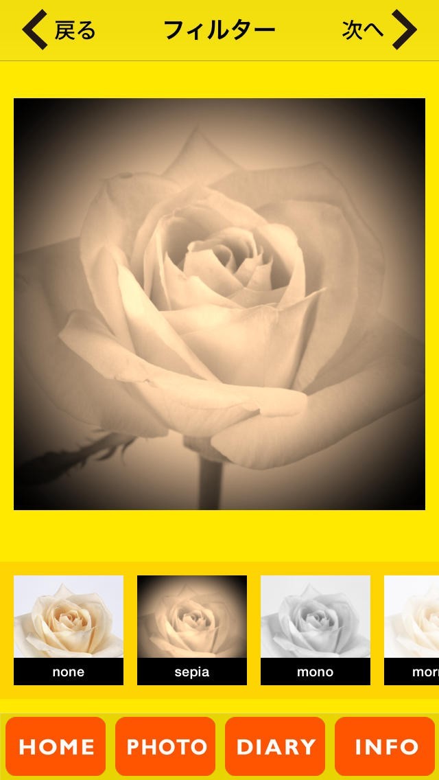 16種類のフィルタと10種類のキャッチコピーで写真を加工!