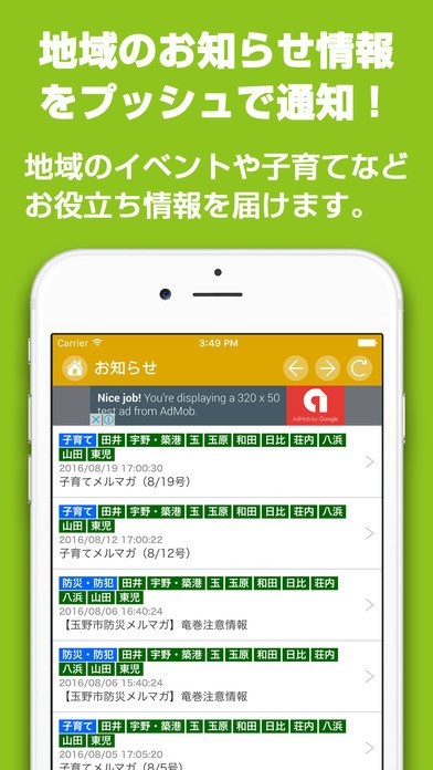 メリット:玉野市に関する地域ニュースやエリア内の施設に関する情報を取り扱っているので、アプリを通して防災や教育・スポーツ分野のお知らせを集約出来るのがメリットです。