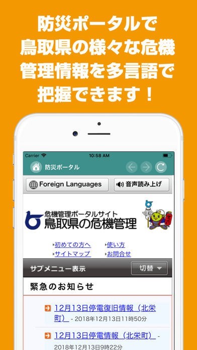 いつでも簡単に「鳥取県の危機管理ポータルサイト」(鳥取県公式サイト「とりネット」)にアクセスできます。