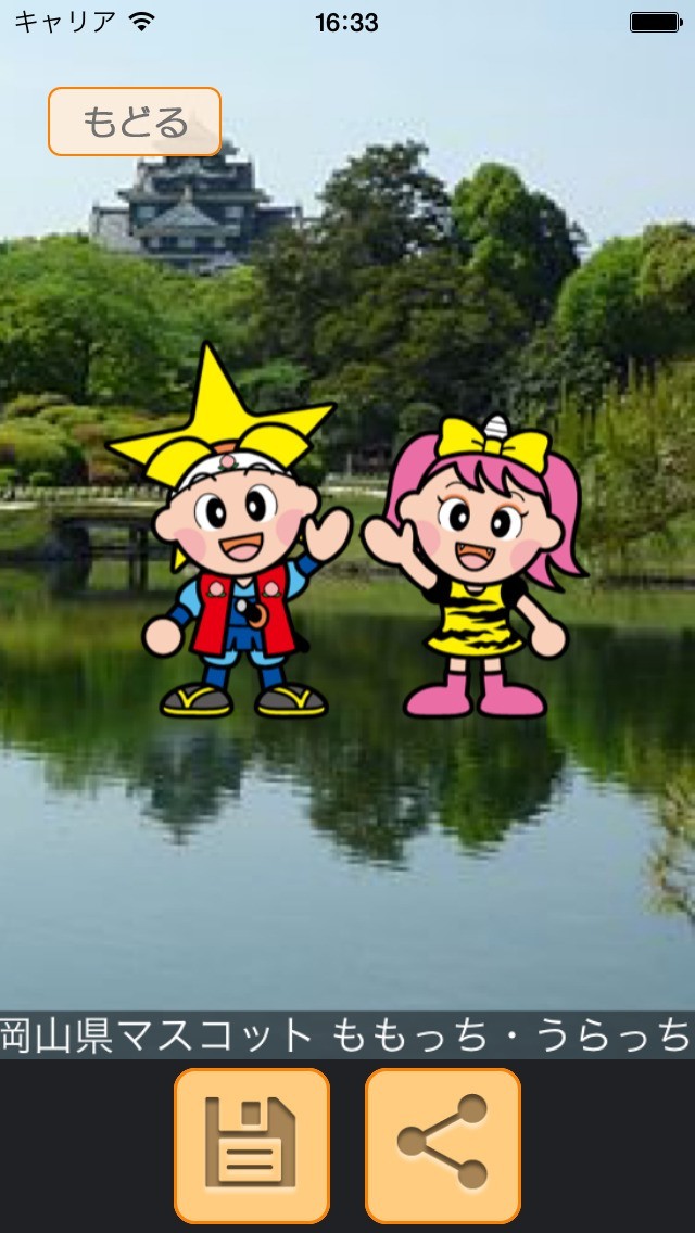 岡山県で大人気のマスコットキャラ、ももっちやうらっちと写真を撮ろう!岡山の名所案内もあるので観光ガイドとしても使える!