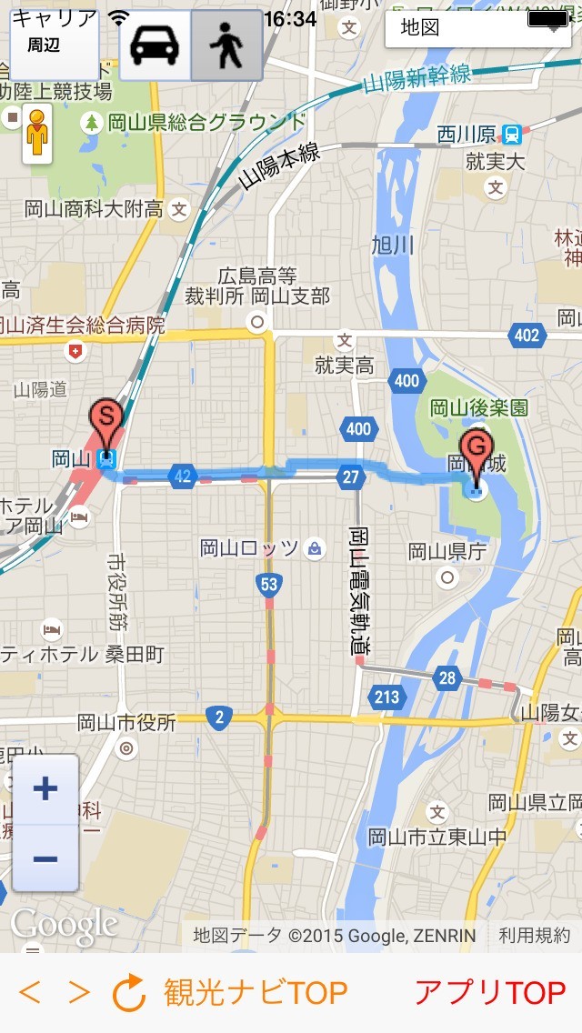 GPSを利用して近くの観光名所を検索!岡山旅行で大活躍!