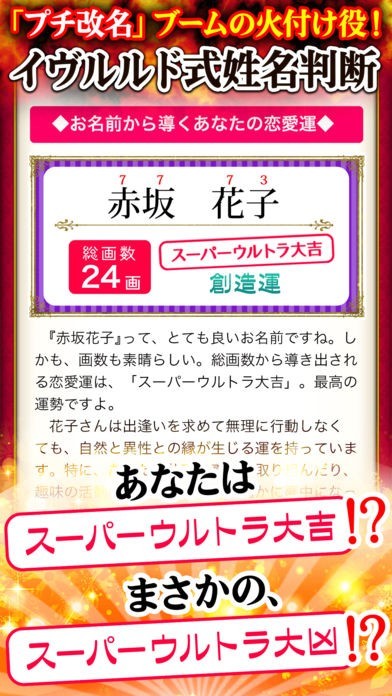 人気鑑定士・イヴルルド遙華による細密な「相性占い」「姓名判断」が受けられる占いアプリ