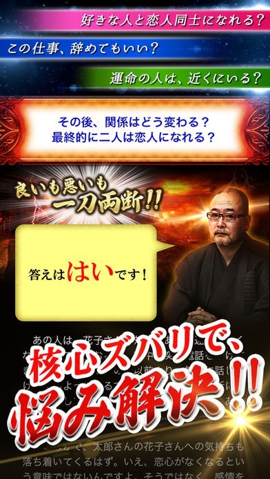 気になる人はいるけど相手が自分のことをどう思っているか分からない、という人には両思い実現鑑定を利用すれば、ふたりの相性をズバリ鑑定します!どんな恋愛もこのアプリさえあれば怖いものなしです
