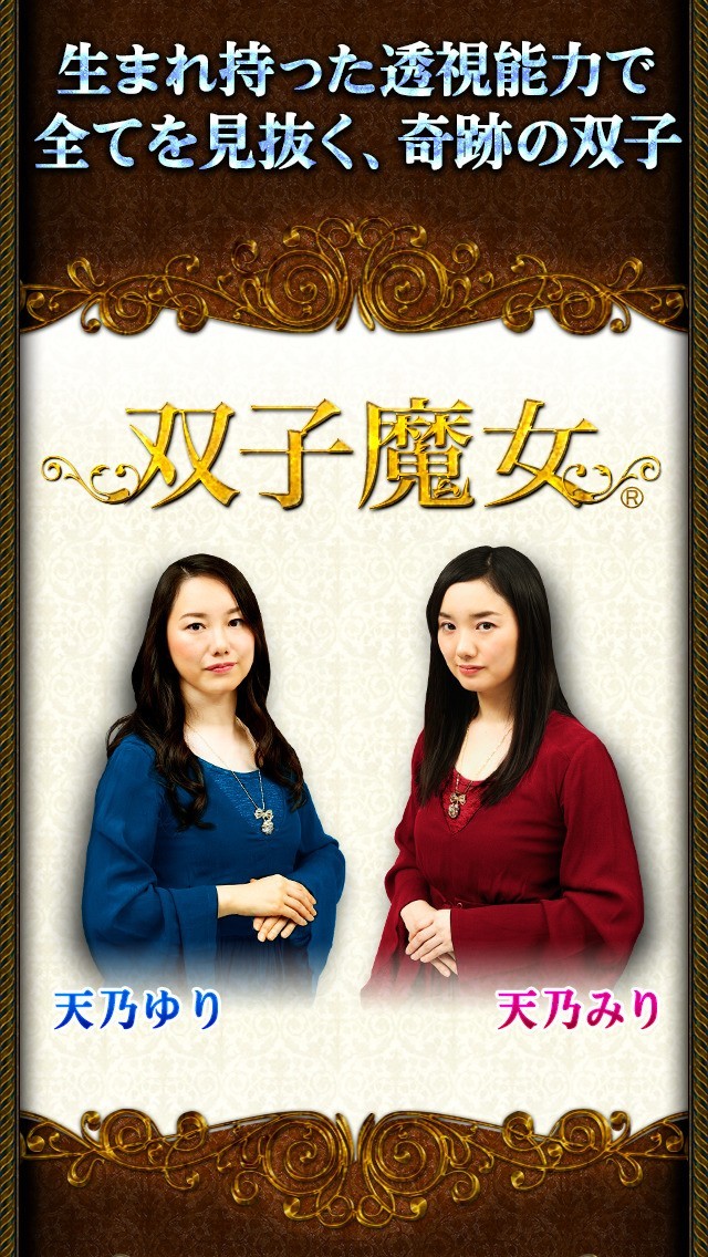 本アプリでは、生まれながらにして強力な透視能力を持つ、『双子魔女』天乃みり・ゆりの透視占いを体験することができます。