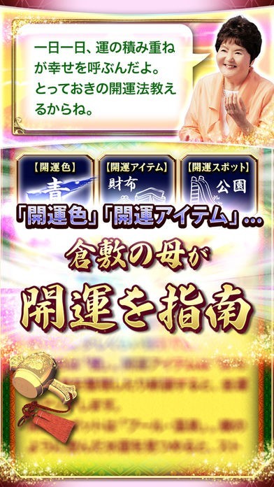 また、占いの最後には、開運スポットや開運アイテムなど、倉敷の母からの開運指南を受けることができます。
