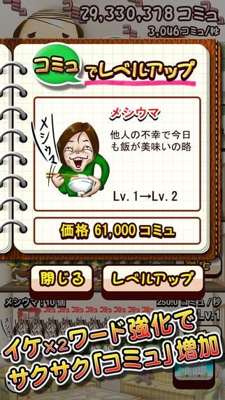 見てるだけでも面白い何とも憎めないキャラクターのおじさんがどんな風に変身していくかは、あなたしだいです。ちょっとした空き時間にプレイしてコツコツ育てて楽しめます。娘と1兆回コミュニケーションを取った後に、お楽しみが待っています。
