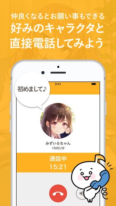 このアプリは、かわいい女性キャラと二人きりで会話をすることで、疲れた心を癒すことができるエンターテイメント通話アプリです。非日常的な、あなたの理想の癒しが手に入ります。