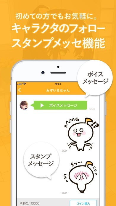ボイスメッセージが送られてきたらスタンプメッセージでキャラクターに返信することができちゃいます。面倒なテキスト入力は必要ないのでテキストでのメッセージのやり取りが苦手な人でも気軽に楽しめます。