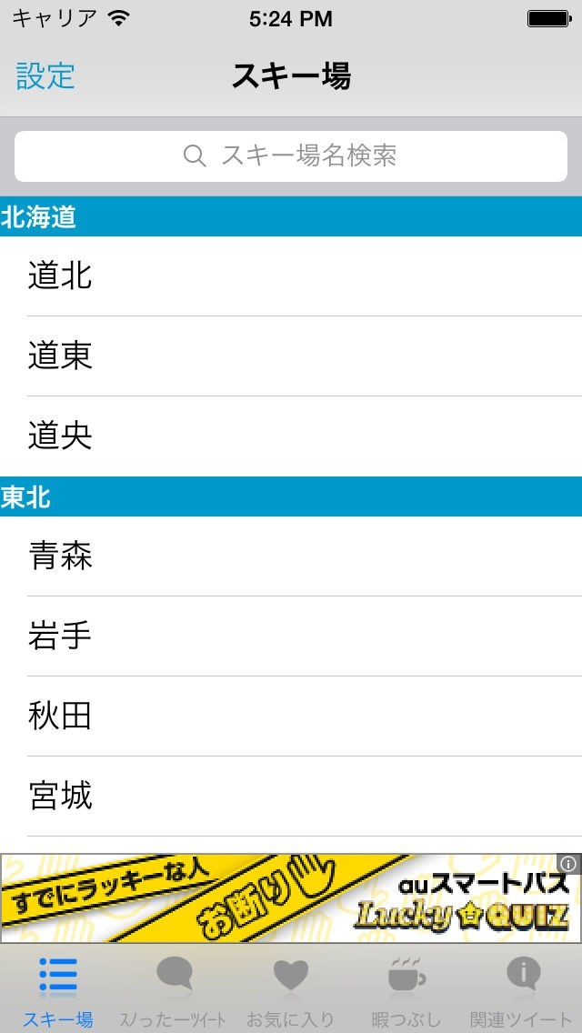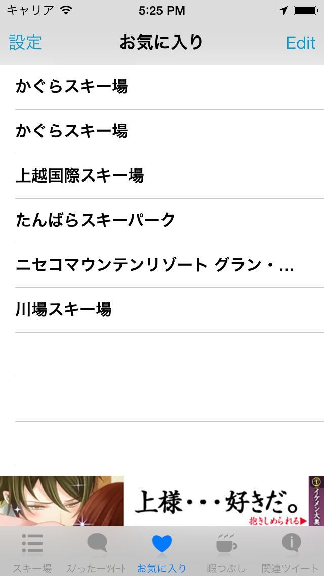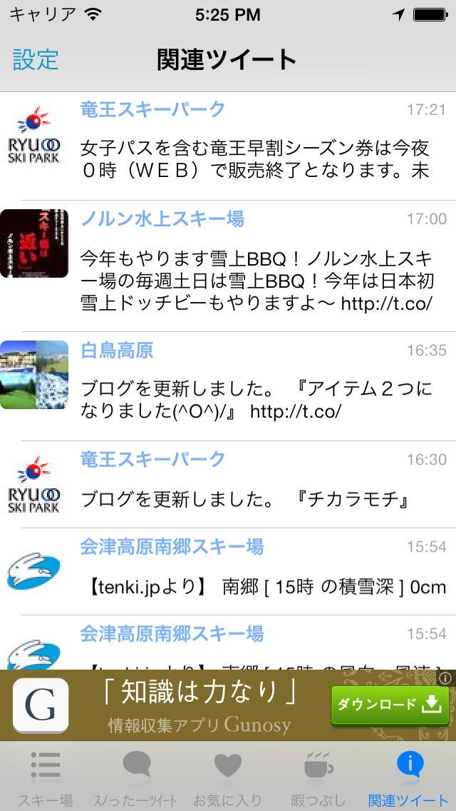 ツイッターをやっているスキー場など、スキー場関連のツイートを一覧で見れるようにしました!