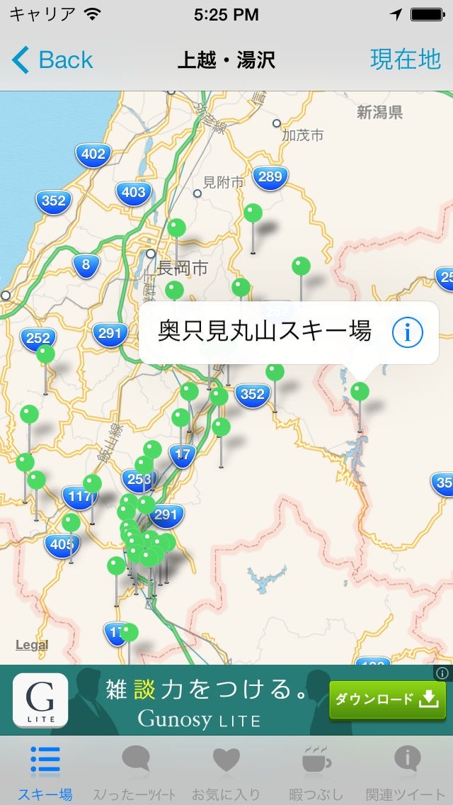・mapボタンでスキー場の位置を表示
