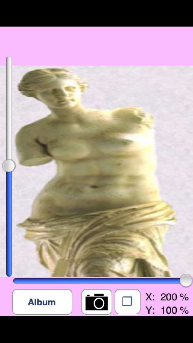 写真映りが悪く、もっとスマートな印象の写真にしたい人。セルフィー写真をSNSにアップすることが多い人。 痩せた時の自分をみてみたい人。 本アプリでは、写真や画像の縦横比を自由に変更することができます。画面左と下にあるスクロールバーを調整するだけで変更が可能です。微々たる調整ができるのもこのアプリの魅力。縦横の拡大縮小は200%まで可能です!アプリで使用する写真は、スマホから選択・アップロードすることができます。編集完了後は、そのままスマホに保存することも。