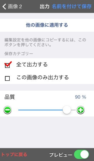 1画像で設定した編集内容を、他の画像にも適用します。この機能により、画像個別に設定する手間が省けます。