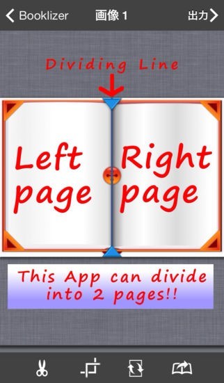 見開きページの分割処理を内蔵しており、お気に入りの本等、大切な本を裁断することなくPDFに変換します。書籍の画像はスキャナーで読み込んだファイル、もしくはPDFファイルをiTunes経由で取り込む、(もしくはカメラで撮影する)必要がありますが、後はアプリ側でまとめて一括PDF化します。iPhone端末内で変換処理を行うため、画面に最適化した状態で出力されます。
