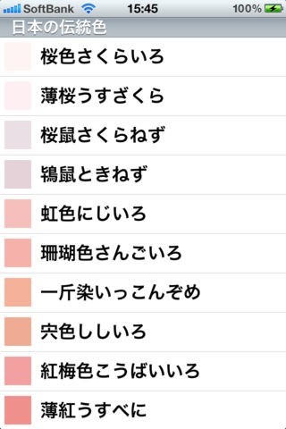 App Storeより引用日本の伝統的な465色から、お気に入りの