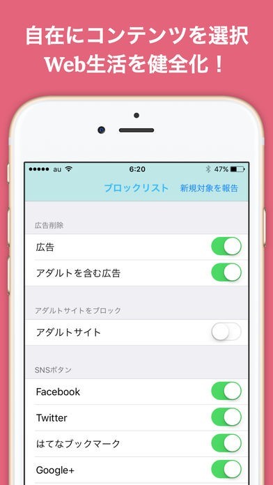 ブロックするかどうかは設定で自由に変更でき、一部のサイトやSNSのボタンにも対応が可能です。健全ではない広告やサイトのブロックを選べるので、未成年の方も安心して使用できます。