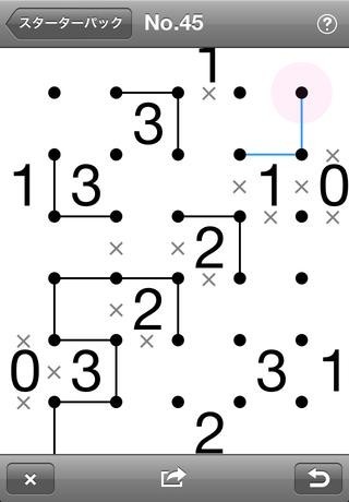 数独に似た数字パズルとなっていて数字の表示された点線ボードに一つの大きな輪っかを作っていきます。言葉の説明が分かりにくい時はヘルプを見れば問題なく解けるので便利です。