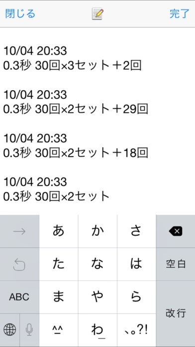 メモ機能があり月日と時間、間隔、回数は自動的に記録される