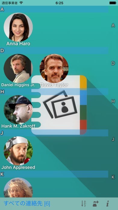 常にトップ画面では氏名ではなく任意の静止画があてはめられてリスト化されています。そのため顔を見比べながら誰のアドレスか認識しながら、電話番号を目視確認して間違いなく掛けられます。