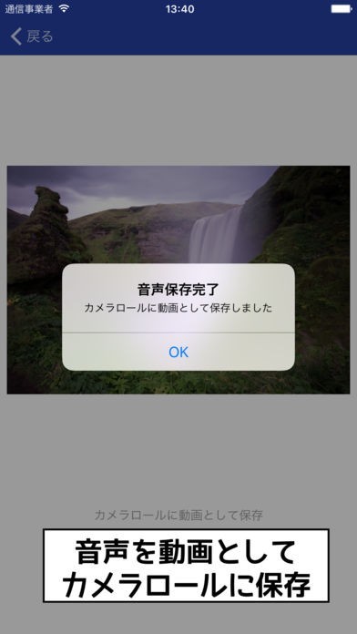 録音した音声はカメラロールに動画として保存して他のアプリにも共有できる