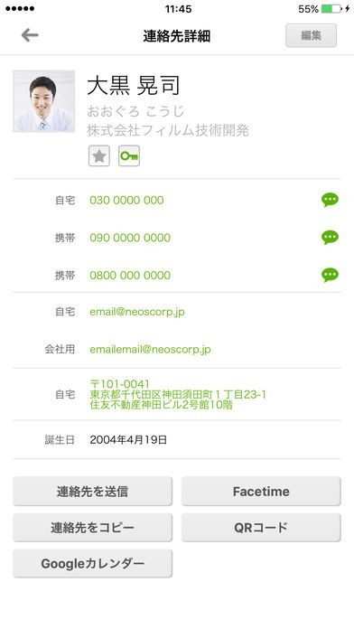 アドレスのQRコード作成機能、シークレット設定機能など、便利な機能が充実したアプリで、ワンランク上のアドレス帳管理が可能