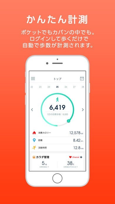歩くだけでWAONポイントを貯めることができます。消費カロリーも出るので、ダイエットに役立てられます。