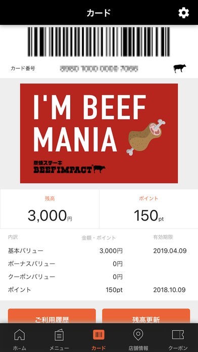 App Storeより引用「インパクトカード専用アプリ」はビーフインパクトをもっと便利にご利用いただくためのアプリです。