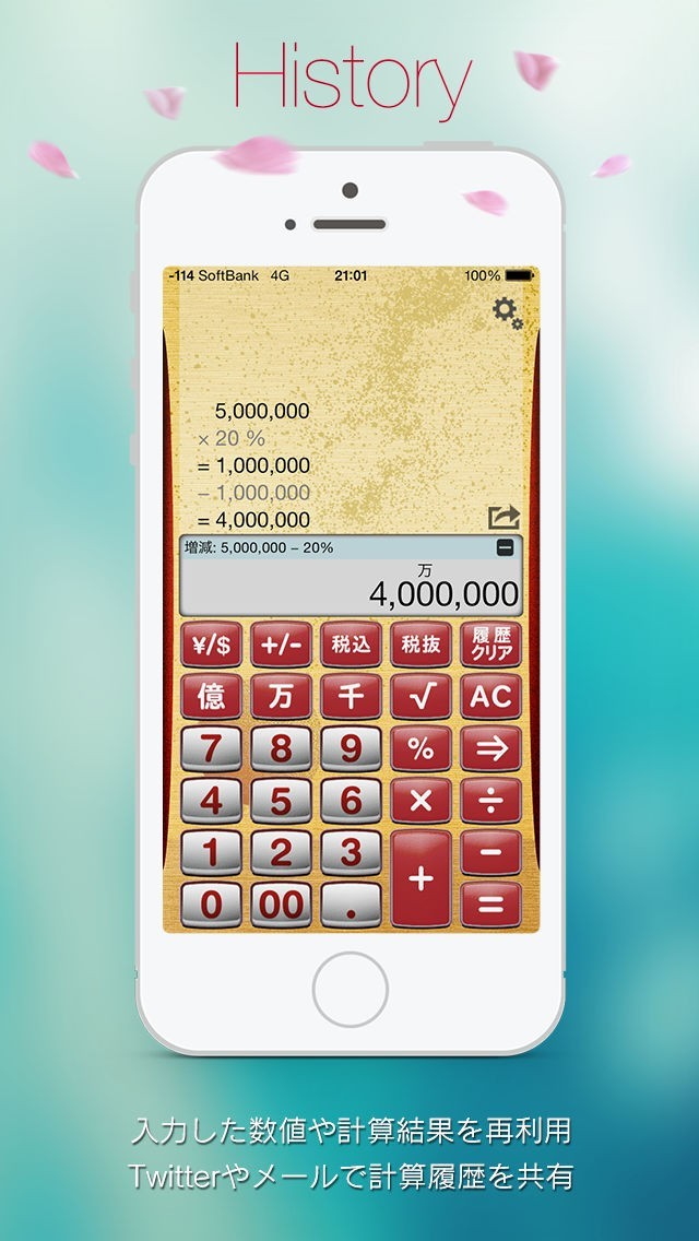 電卓の reCalcPro(リカルクプロ)計算した履歴の数字を、メモしたようにタップできる、消費税ワンタッチ計算機アプリ for iPhone、iPadの特徴・編集部レビュー