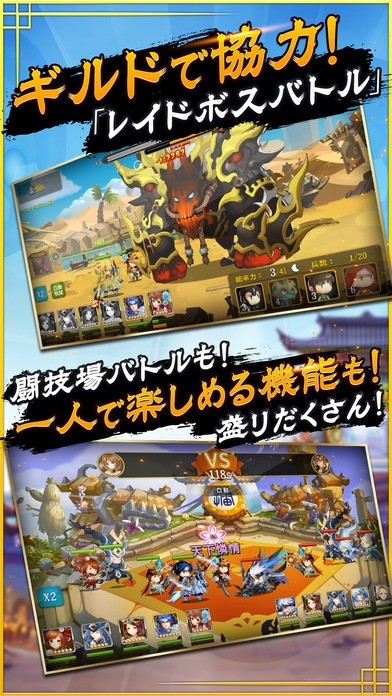 累計2,000万ダウンロードと、世界で人気を博す、三国志をモチーフにしたRPG、個性的なキャラクターが魅力